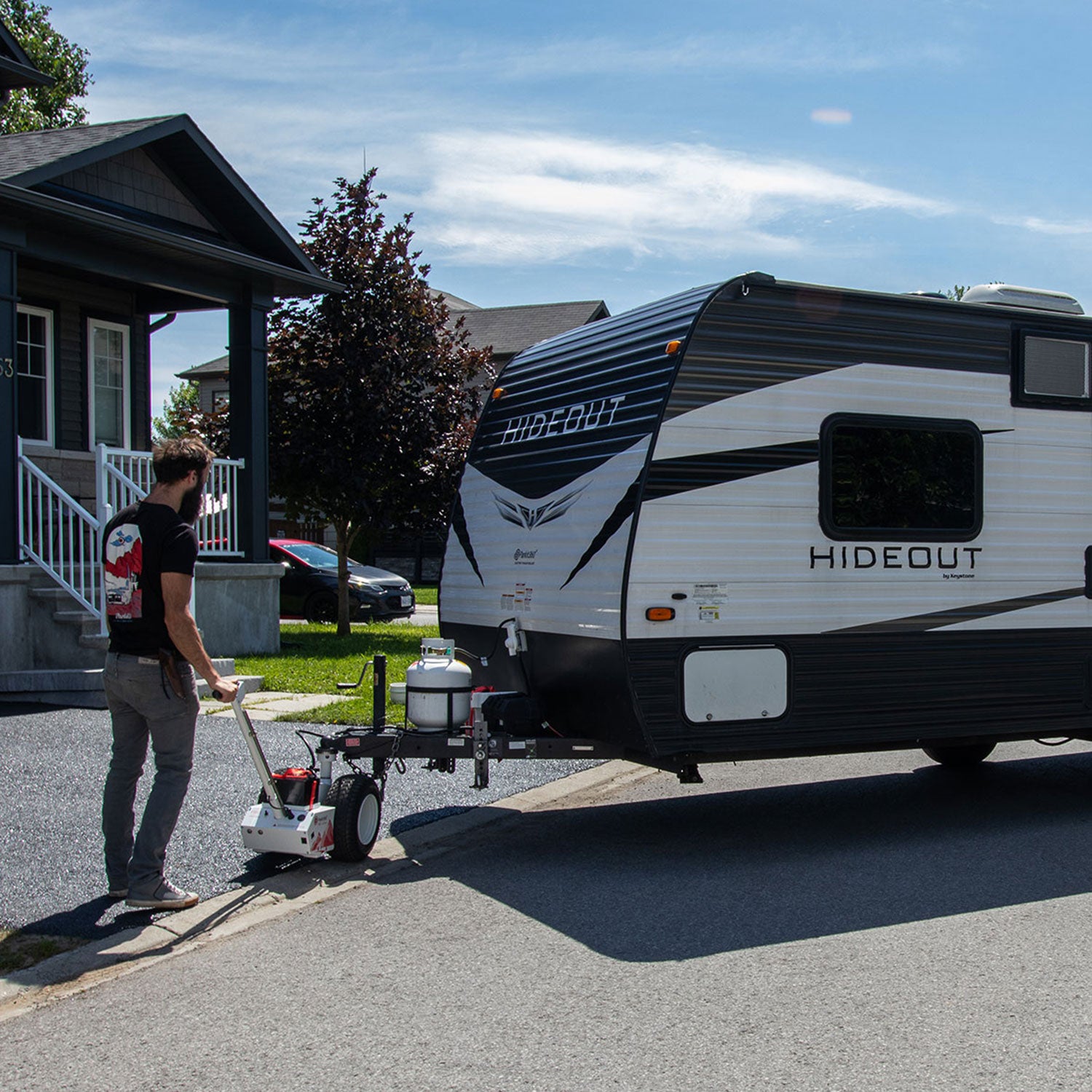 This compact, motorized dolly can connect to almost any trailer right out of the box, and will open up a whole new world of parking options for your trailer, boat, or RV.